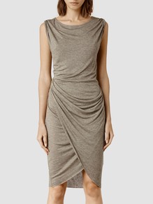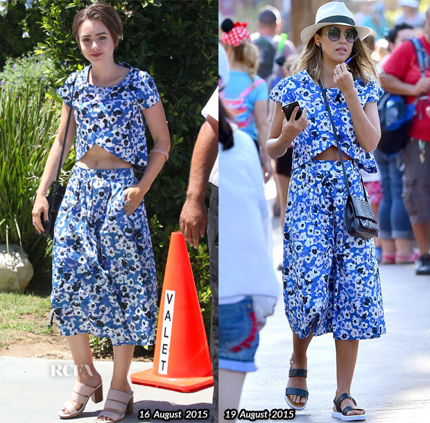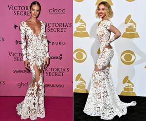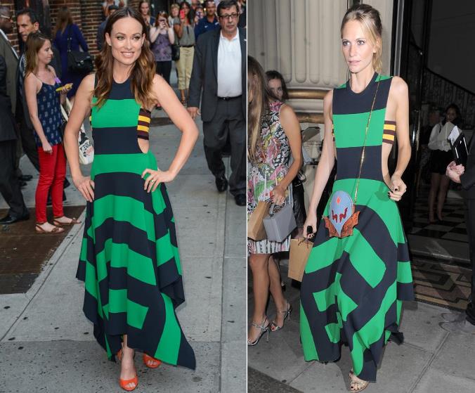 Kjolen er en maxikjole med høye sidesplitter og militærsnitt fra det amerikanske merket «Self Portrait». Gigi har stylet den med kamelfarget kasjmirkåpe, Kurt Geiger Britton pumps og Ray-Bans nydelige aviatorsolbriller i matt gull og orange. Olivia, på sin side, har stylet kjolen med mørke pumps og veske i dyreprint og sort armbånd og klokke.